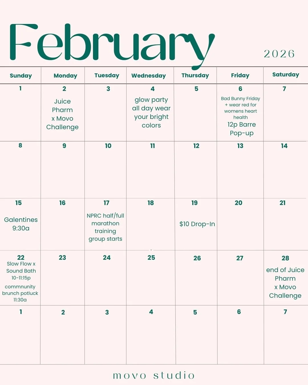 - 15% off all Movo classes & passes for the duration of run club